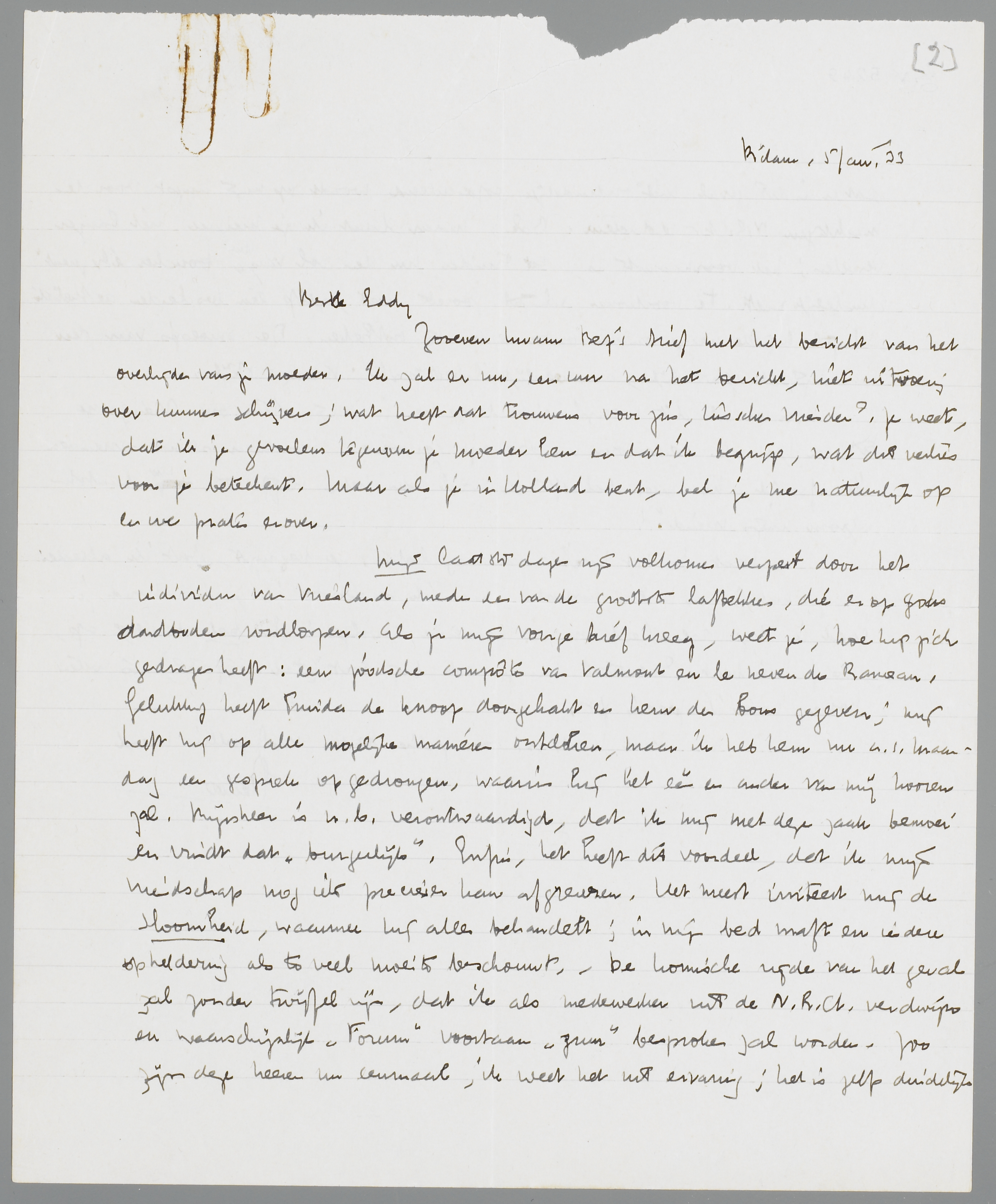 Zooeven kwam Bep's brief met het bericht van het overlijden van je moeder. Ik zal er nu, een uur na het bericht, niet uitvoerig over kunnen schrijven; wat heeft dat trouwens voor zin, tusschen vrienden? Je weet, dat ik je gevoelens tegenover je moeder ken en dat ik begrijp, wat dit verlies voor je beteekent. Maar als je in Holland bent, bel je me natuurlijk op en we praten erover.