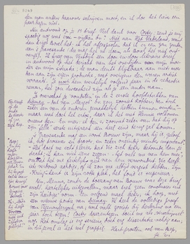 Nu antwoord op je 1e brief. Veel dank voor Coster; zend je mij spoedig nog wat exx. - vijftien bv.? Niet aan Het Vaderland, want dan krijgt Borel het; ik heb afgesproken dat ik er een zou zenden aan 's Gravesande (die mag het nl. doen, als Borel het niet ontvangt). Ik kreeg van Vestdijk een door-en-door literaire brief in antwoord op het bericht van het overlijden van mijn moeder en mijn situatie; de man denkt blijkbaar aan niets meer dan aan zijn eigen productie, wat overigens den waren artist verraadt. Je moet hem werkelijk volgend jaar in de redactie nemen, het zou dwaasheid zijn als je een ander nam.