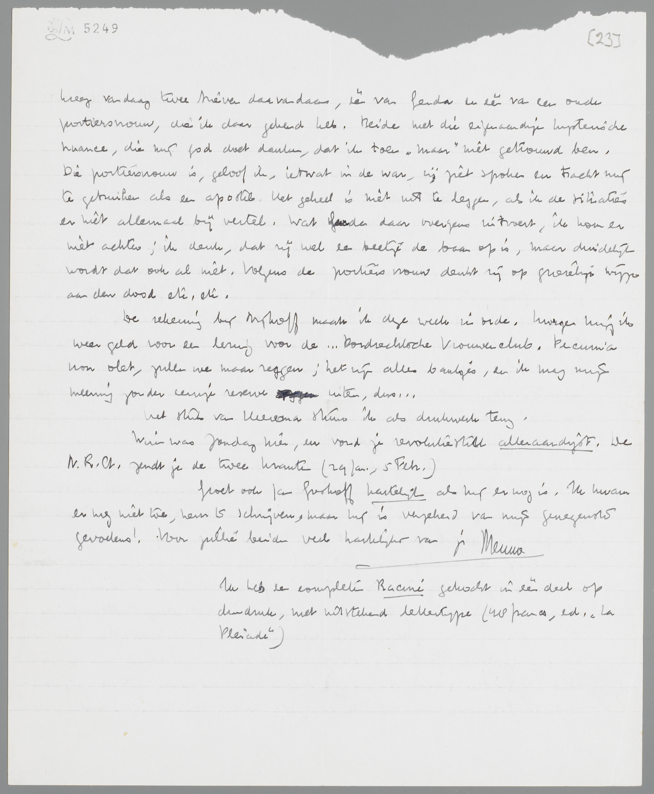 Groet ook Jan Greshoff hartelijk als hij er nog is. Ik kwam er nog niet toe, hem te schrijven, maar hij is verzekerd van mijn genegenste gevoelens! Voor jullie beiden veel hartelijks van