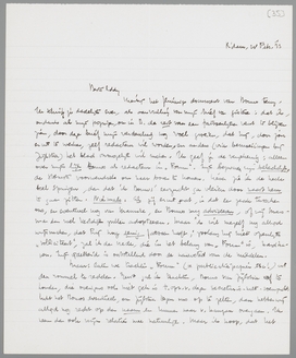 Hierbij het fluimige document van Bouws terug. Ik schrijf je dadelijk even, als aanvulling van mijn brief van gisteren: dat ik, ondanks al mijn pogingen, om in B. de rest van een fatsoenlijke vent te blijven zien, door deze brief mijn verdenking nog voel groeien, dat hij, door jou er uit te werken, zelf redacteur wil worden, en anders (via bemoeiingen bij Zijlstra) het blad onmogelijk wil maken. Ik geef je de verzekering: alleen over mijn lijk Bouws als redacteur in Forum. Zijn bezwaren zijn belachelijk, de stomste voorwendsels om naar boven te komen. Liever zie ik de heele boel springen, dan dat ik Bouws' eerzucht ga vleien door naast hem te gaan zitten. Niemals. Als jij eruit gaat, is dat een zaak tusschen ons, en eventueel nog van Maurice, en Bouws mag adviseeren, of wij Marsman dan wel Vestdijk zullen adopteeren. Maar ik wil mezelf nog altijd wijsmaken, dat hij nog eenig fatsoen heeft; zoolang hij niet openlijk ‘solliciteert’, zal ik de vrede, die in het belang van Forum is, handhaven. Zijn ijdelheid is ontstellend door de naieveteit van de middelen.