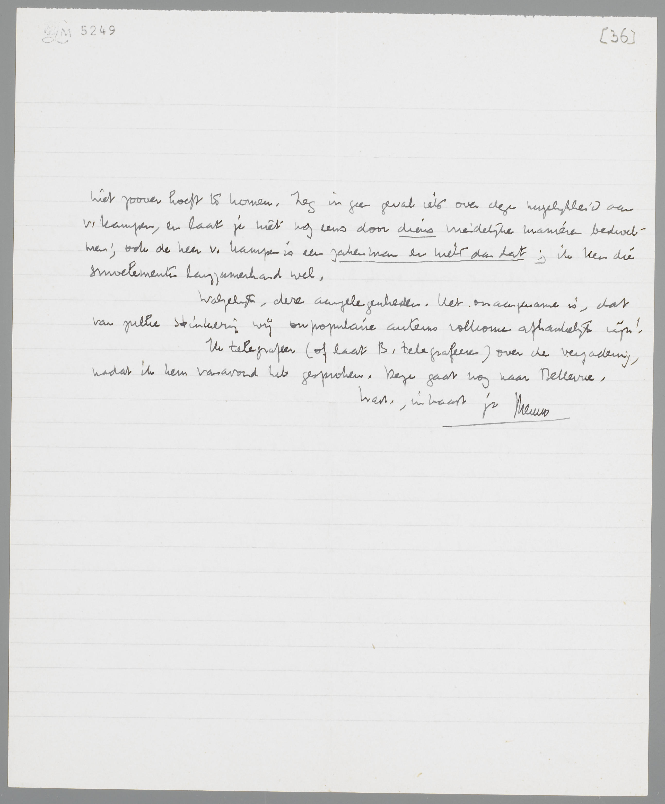 Ik telegrafeer (of laat B. telegrafeeren) over de vergadering, nadat ik hem vanavond heb gesproken. Deze gaat nog naar Bellevue. hart., in haast
