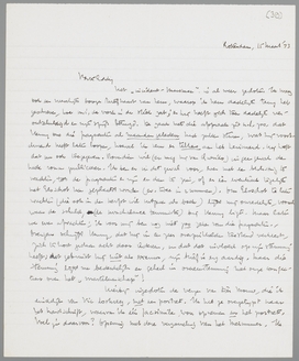 Hierbij ingesloten de verzen van Dèr Mouw, die ik eindelijk van Vic loskreeg, met een portret. Ik heb ze overgetypt naar het handschrift, waarvan ik één facsimile wou opnemen en het portret. Voel je daarvoor? Opening met deze verzameling van het Meinummer. Ik vind, dat er een paar bijzonder goede en typisch - Dermouwsche sonnetten bij zijn; ze zijn niet allemaal even goed, maar het geheel is zoo absoluut zonder eenige aanstellerij en poëtische kul, dat ik ze als geknipt voor ons acht. Ik ben overtuigd, dat er in de nalatenschap nog veel meer zit, maar er zit geen grein orde in; het is een zoodje, zooals het in de kast ligt. Het handschrift is aardig om te facsimileeren.
