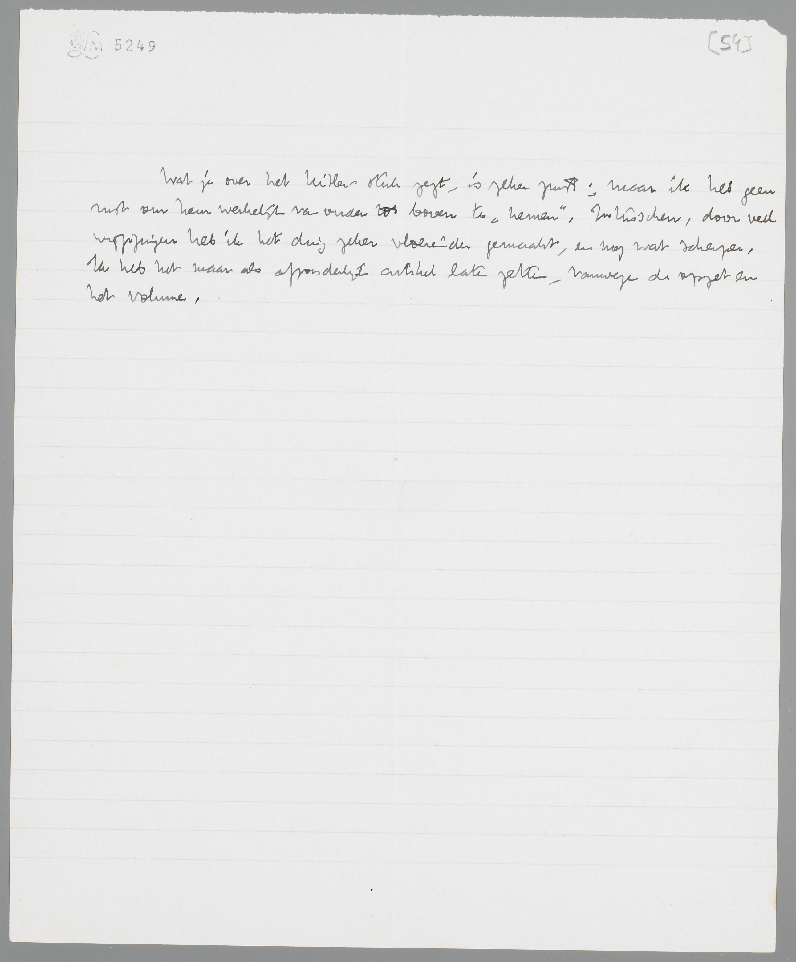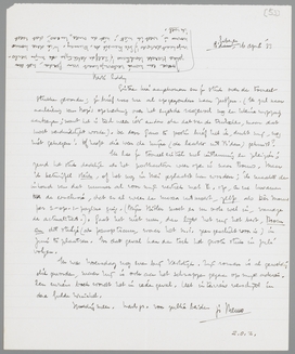 Gisteren hier aangekomen en je stuk over de tooneelstukken gevonden; je brief was me al opgezonden naar Zutfen. (Ik zal naar aanleiding van Bep's opmerking over het engelsche rasgevoel nog een kleine wijziging aanbrengen; want het is toch weer iets anders dan dat van de Duitschers, maar dat moet verduidelijkt worden). De door Gans te posten brief heb ik, dunkt mij, nog niet gekregen! Of heeft die weer de mijne (de laatste uit R'dam) gekruist?