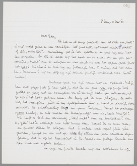 Malraux zond me zijn roman met een opdracht. Wil je hem vast zeggen (als je hem ziet), dat ik de gave zeer op prijs heb gesteld en graag met een exemplaar van één van mijn boeken zou antwoorden, als ze niet in het holl. geschreven waren. Na lezing zal ik hem schrijven. Ik ontving het exemplaar juist in een gedeprimeerde bui en werd er dadelijk door verkwikt. De schoolmeesterij blijft me zwaar hinderen. Vooral het goedkoope succes daarbij, en niet minder de bakerpraatjes voor de ‘heele kleintjes’. Wie heeft er toch een eerwaardig ‘klein ambt’ voor me beschikbaar? Aan de Zieke heb ik natuurlijk weer niets kunnen doen, hoewel ik er naar snak, de laatste stukken te schrijven. Ant is verleden week nogal flink ziek geworden, knapt nu weer wat op. Alles bij elkaar een paar vervelende dagen. Gelukkig, dat ik op het leeskabinet in Gr. Nederl. een prettige kroniek van Bep vond over engelsche boeken.