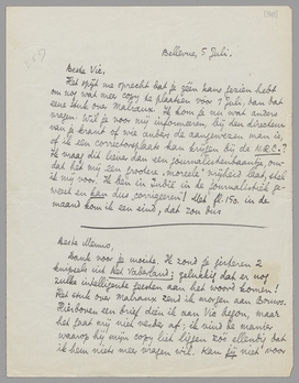 Dank voor je moeite. Ik zond je gisteren 2 knipsels uit Het Vaderland; gelukkig dat er nog zulke intelligente geesten aan het woord komen! Het stuk over Malraux zend ik morgen aan Bouws. Hierboven een brief dien ik aan Vic begon, maar het gaat mij niet verder af; ik vind de manier waarop hij mijn copy liet liggen zóó ellendig dat ik hem niets meer vragen wil. Kan jij niet voor mij solliciteeren bij van der Hoeven of wie het zij? - misschien kan jij met Vic erover praten, als je dat noodig vindt. Heb je geen verdere ‘relaties’?