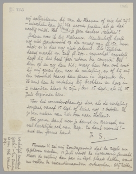 Gisteren was ik bij Malraux. Meulenhoff heeft nog niet geantwoord op die vraag van fl. 150.- voorschot; er is dus nog niets gebeurd. Als Zijlstra haast maakt en zelf fl. 200.- voorschot voorstelt, heeft hij het boek ‘par retour du courrier’. Bel hem op en zeg hem dit; vraag hem dan ook wat hij mij geven kan voor de vertaling, en of hij mij een voorschot daarop kan geven in September bv. Ik zend hem de vertaling bij brokken en hoop in 2 maanden klaar te zijn; dus 15 Sept., als ik 15 Juli beginnen kan.