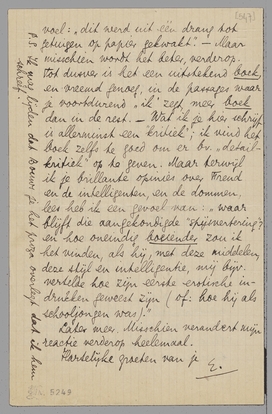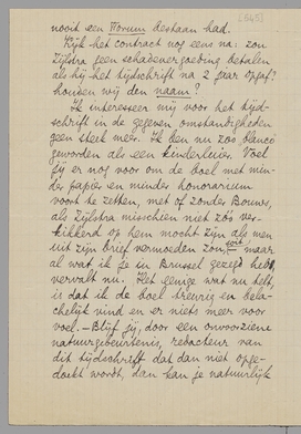 Ik interesseer mij voor het tijdschrift in de gegeven omstandigheden geen steek meer. Ik ben nu zoo ‘blanco’ geworden als een kinderluier. Voel jij er nog voor om de boel met minder papier en minder honorarium voort te zetten, met of zonder Bouws, als Zijlstra misschien niet zóó verkikkerd op hem mocht zijn als men uit zijn brief vermoeden zou, soit - maar al wat ik je in Brussel gezegd heb vervalt nu. Het eenige wat nu telt, is dat ik de boel treurig en belachelijk vind en er niets meer voor voel. - Blijf jij, door een onvoorziene natuurgebeurtenis, redacteur van dit tijdschrift dat dan niet opgedoekt wordt, dan kan je natuurlijk alles van me krijgen wat je wilt, en ongezien het honorarium. Maar als de boel achter Bouws' naar Indië verzeilde posteriores radicaal wordt opgedoekt, vind ik het best, - en zelfs magnifiek.