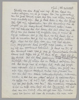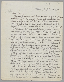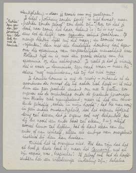 [E.d.P.-d.R.:] Lieve Menno, Ik heb ‘vooruitgewerkt’ voor Vaderland en Locale Pers; je begrijpt dat ik tusschen al die brieven door te afgestompt was om iets te lezen. Ik ben pas 1/2 hoofdstuk verder dan wat ik al kende. 't Spijt me, Bep.
