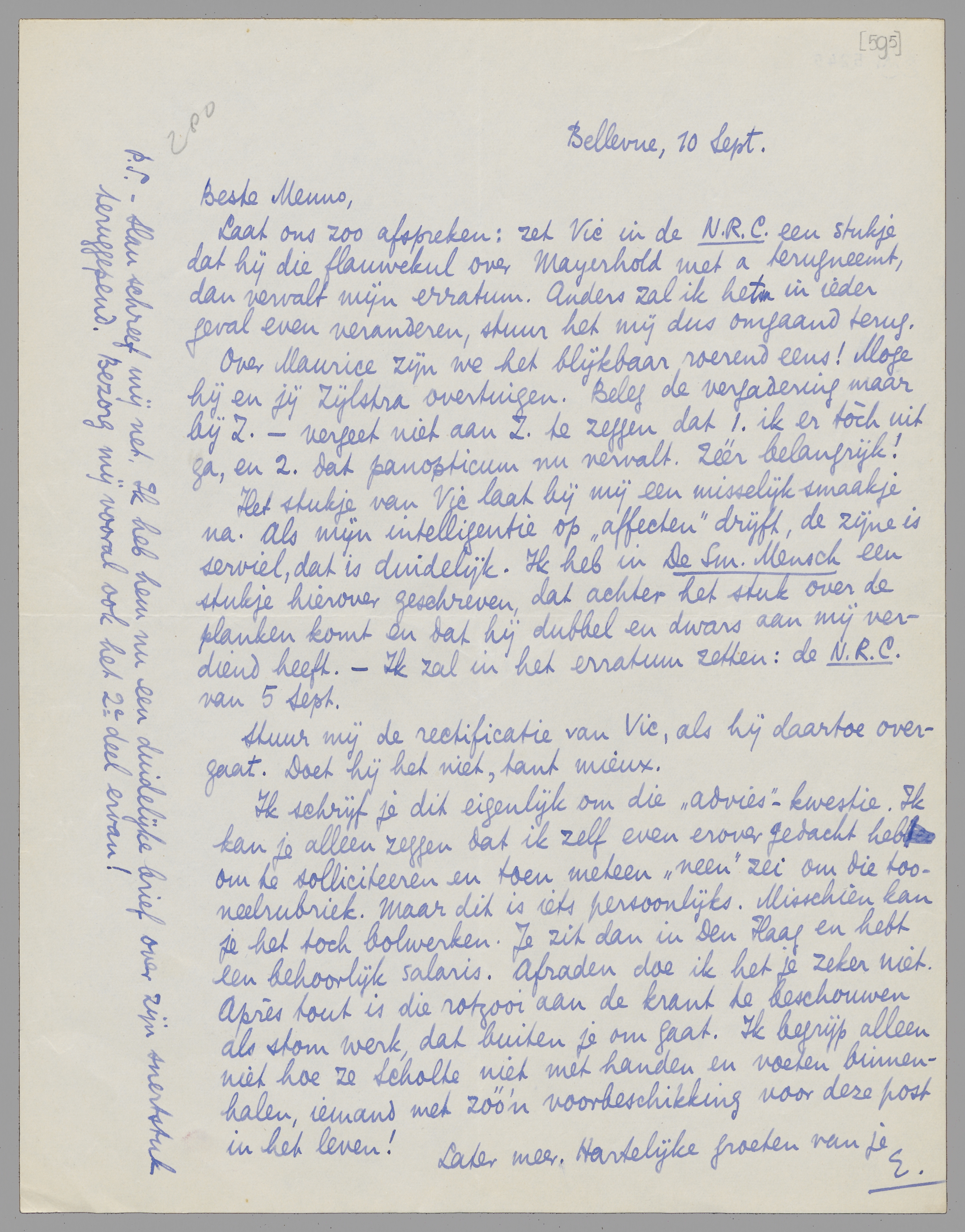 Laat ons zoo afspreken: zet Vic in de N.R.C. een stukje dat hij die flauwekul over Mayerhold met a terugneemt, dan vervalt mijn erratum. Anders zal ik het in ieder geval even veranderen, stuur het mij dus omgaand terug.