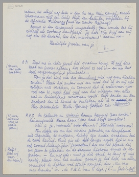 Ten slotte en om het verdere gedonder, na terugkomst uit Chantilly, te ontgaan, hierbij een ander erratum dat de zaak beslist. Tant pis als het langer wordt, het is nu ook zooveel ‘belangrijker’ geworden! Doe me het plezier dit nu gauw te plaatsen en de stomme historie ermee te begraven. - En nog iets: vind je dit stuk te lang of niet aardig, plaats dan het andere zooals je het hebt, na alleen veranderd te hebben wat je zelf aangaf, dus ‘een van onze kranten’ in ‘de N.R.C. van 5 Sept. j.l.’ - Goed? - Oef!