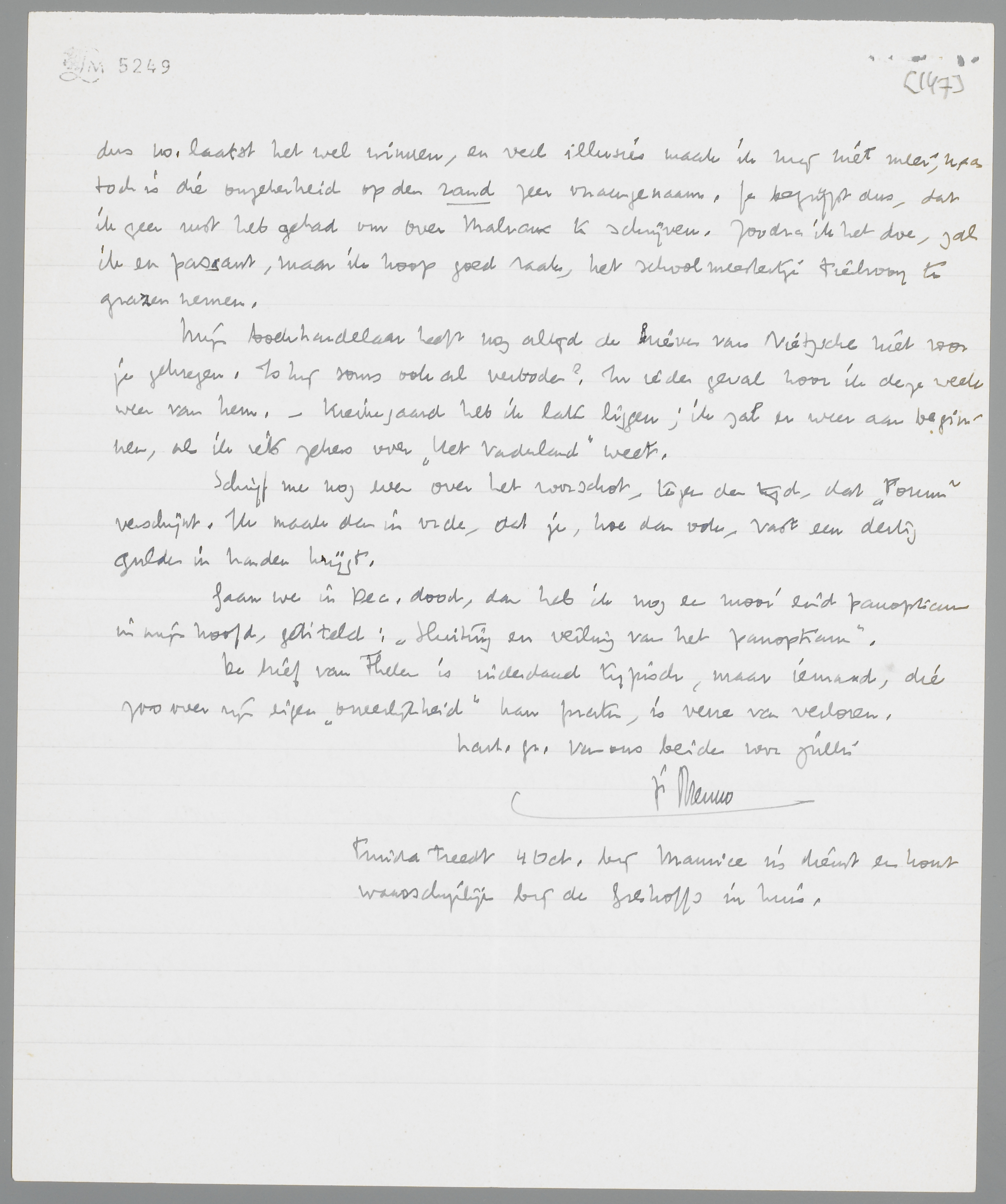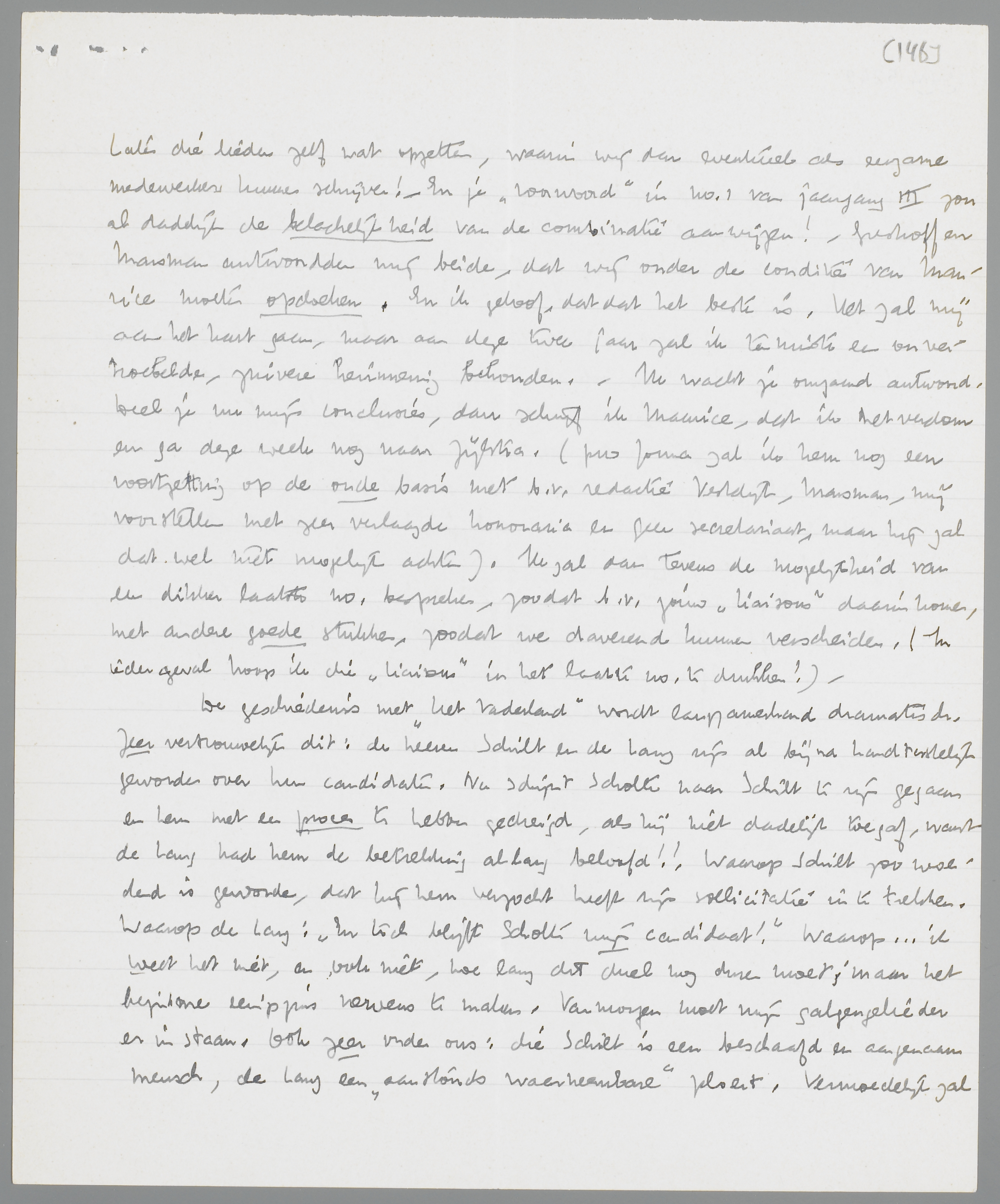 Schrijf me nog even over het voorschot, tegen den tijd, dat Forum verschijnt. Ik maak dan in orde, dat je, hoe dan ook, vast een dertig gulden in handen krijgt.