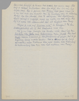P.S. Ik heb misschien een editie van Dialogues des Morts van Fontenelle gevonden d.w.z. zeker, maar het behoort Guilloux toe. Ik laat het nu voor ons opsporen. In ieder geval kan ik je dit ex. leenen - Angst is vertaald door Grietje de [keuken]meid. Ik heb trek om dat aan die uitgeverij ‘Den Gulden Ster’ te schrijven. Het is toch feitelijk te dwaas dat zooiets zoo maar mag. Het ding is totaal onleesbaar door den stijl, een lor van het ergste soort. Het is jammer dat Forum dood gaat, want dit is nu veel meer een kwestie dan de omslagen van de Albatross-boekjes om een panopt. over te schrijven. Dat Dostojevsky slecht schreef is mogelijk, maar nu weten we ook zeker dat hij het nooit zóó abominabel deed als Siegfried van Praag.