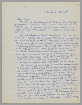 Over het komen naar Holland schrijf ik in Dec. nader. Ons nieuwe adres moet eerst behoorlijk worden ‘ingewohnd’. Als ik in Holland kom, wil ik graag 2 dagen bij je logeeren; bij jullie, moet ik zeggen, omdat Ant hier zeker 1e stem is. Maar misschien komt Bep alleen naar het ‘dierbaar plekje grond’.