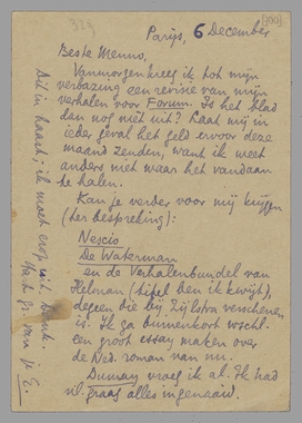 Vanmorgen kreeg ik tot mijn verbazing een revisie van mijn verhalen voor Forum. Is het blad dan nog niet uit? Laat mij in ieder geval het geld ervoor deze maand zenden, want ik weet anders niet waar het vandaan te halen.