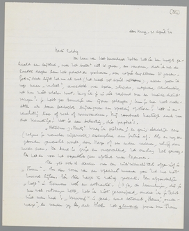 Politicus z. Partij kreeg ik gisteren; er ging dadelijk een (volgens je wenschen ingenaaid) exemplaar aan jullie af. Als er nog een gebonden gewenscht wordt, door Bep of om andere redenen, schrijf dan maar even. De band is grijs en onopvallend, het omslag hel genoeg. Ik heb er voor het oogenblik geen afstand meer tegenover.