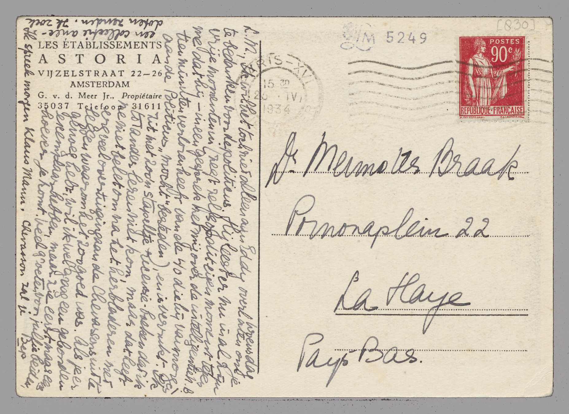 Ik spreek morgen Klaus Mann. Chevasson zal je een collectie anecdoten zenden. Ik zoek nog naar andere dingen: Les Annales schijnt niet goed te zijn. Ik zou op jacht moeten gaan langs de Seine, maar heb zoo verdomd weinig tijd, helaas!