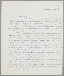 Het prospectus voor Querido heeft hem eergisteren nog bereikt; in a hurry geschreven, met iets over je latijnsche geest en je individualisme, zeer banaal natuurlijk, aber um so besser. Querido berichtte mij al de ontvangst. Verder heeft hij mij nu weer een voorstel gedaan, dat ik in beginsel accepteerde: Greshoff en ik stellen ons garant voor ev. deficit, wanneer op 1 Nov. '35 de onkosten niet zijn goedgemaakt door den verkoop en de f 350 door jou afgestaan. Arm zullen we er zoo in geen geval door worden, lijkt me, zelfs niet bij de ongunstigste mogelijkheid. In ruil voor deze garantie belooft Querido niet aan het boek te ‘plukken’; de 70 pag. vervallen dus niet!