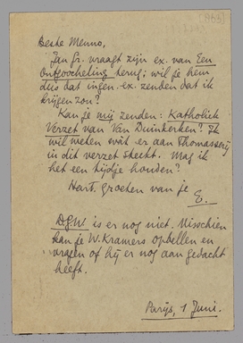 Kan je mij zenden: Katholiek Verzet van Van Duinkerken? Ik wil weten wàt er aan Thomasserij in dit verzet steekt. Mag ik het een tijdje houden? Hart. groeten van je