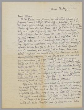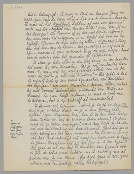 Nu herinner ik mij ook dat Ant indertijd mij vroeg om haar wat te typen te geven. Misschien wil zij het dan in 2 exx. typen? Het gaat er nl. om dat de drukker van Querido vóór 15 Juli de tekst moet hebben, en ik ontving nu al proeven van De Sm. Mens. (Het boek gaat er zeer goed uitzien, met een prettige, volle bladspiegel.)