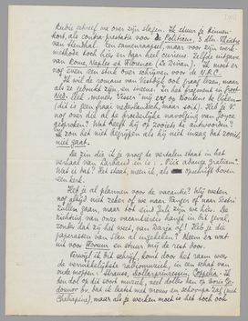 Ik wil de romans van Vestdijk ook graag lezen, maar als ze gedrukt zijn, en ineens. In het fragment in Groot-Ned. leek ‘meneer Visser’ mij erg op Boutens te lijken - (dit is geen fraai nederlandsch, maar soit). Heb je V. nog over die al te broederlijke navolging van Joyce gesproken? Wat heeft hij op zooiets te antwoorden? Ik zou het niet begrijpen als hij niet inzag dat zooiets niet gaat.