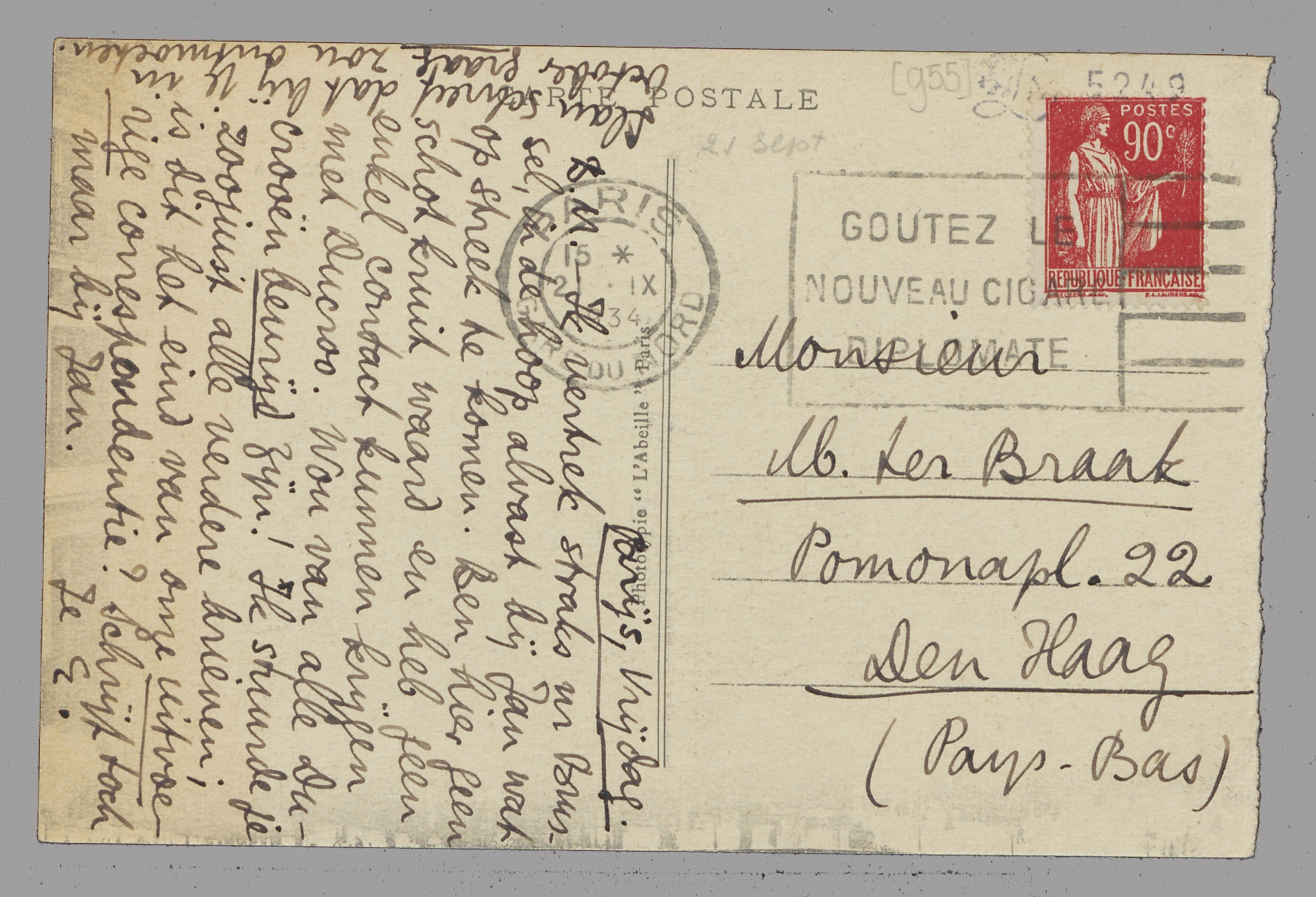 - Ik vertrek straks nr Brussel, ik hoop alvast bij Jan wat op streek te komen. Ben hier geen schot kruit waard en heb geen enkel contact kunnen krijgen met Ducroo. Wou van alle Ducrooën bevrijd zijn! Ik stuurde je zoojuist alle verdere brieven; is dit het eind van onze uitvoerige correspondentie? Schrijf toch maar bij Jan.