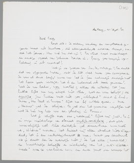 Tot spoedig nader. Deze zal je nog wel in Parijs bereiken. Ik hoop Bep morgen op te kunnen bellen voor een afspraak. Gisteren en vandaag: v. Deyssel 70 jaar! hart. hand