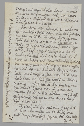 Ik staak dit gepraat nu. Graag het stuk van Antonini en de brief van Endt terug. Hartelijk gegroet, ook door Bep.