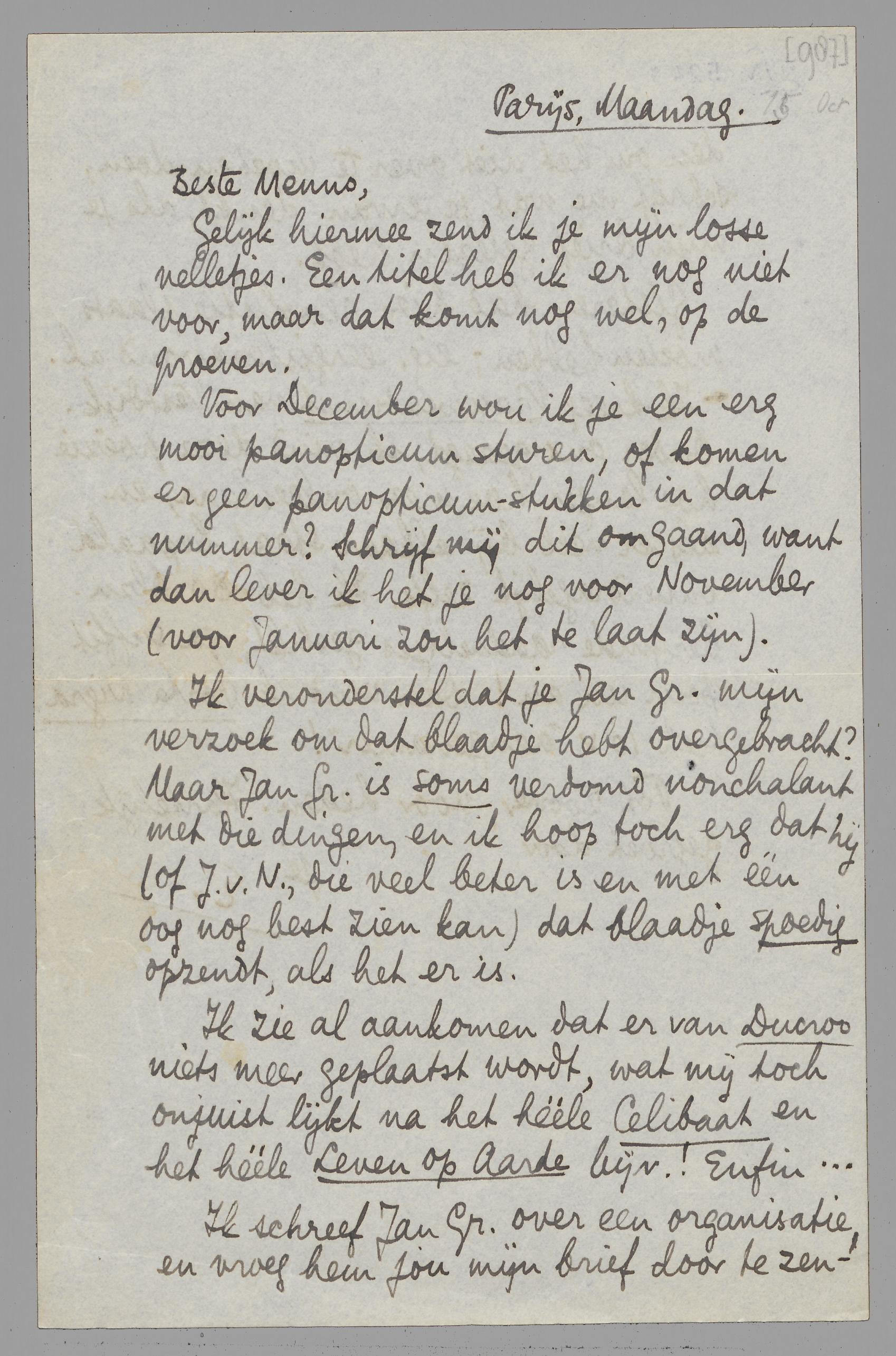 Voor December wou ik je een erg mooi panopticum sturen, of komen er geen panopticum-stukken in dat nummer? Schrijf mij dit omgaand want dan lever ik het je nog voor November (voor Januari zou het te laat zijn).