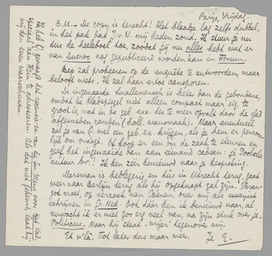 Marsman is bedlegerig en dùs in Utrecht terug, gaat weer naar Berlijn terug als hij opgeknapt zal zijn. Varangot moet, op verzoek van Coenen, over mij als essayist schrijven in Gr. Ned. Ook dààr ben ik benieuwd naar, al verwacht ik er niet zoo erg veel van, na zijn stuk over je Politicus. Maar hij staat ‘vrijer’ tegenover mij.