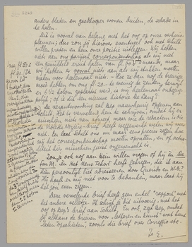 Dit is vooral van belang met het oog op onze verhuisplannen; dus zou jij hierover eventueel ook met Schilt willen praten en hem onze positie uitleggen. Wij hebben niets aan ons parijsch correspondentschap als wij niet een gemiddeld eruit halen van fl. 60.-** 's maands, maar wij hebben er vooral niets aan als wij stukken moeten maken voor heelemaal niets. - Hoe ze dan nog de treurige moed hebben om ons fl. 20. - te weinig te zenden, terwijl er 6½ kolom geplaatst werd, is mij heelemaal onbegrijpelijk; of is dit een nieuwe historie De Lang?