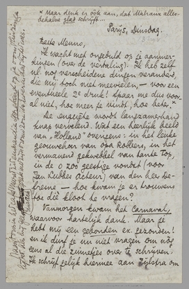 Ik wacht met ongeduld op je aanmerkingen (over de vertaling). Ik heb zelf nl. nog verscheidene dingen veranderd, die mij toch niet meevielen, - voor een eventueele 2e druk! Spaar me dus vooral niet, hoe meer je vindt, hoe beter. [Maar denk er óók aan, dat Malraux allesbehalve glad schrijft...]