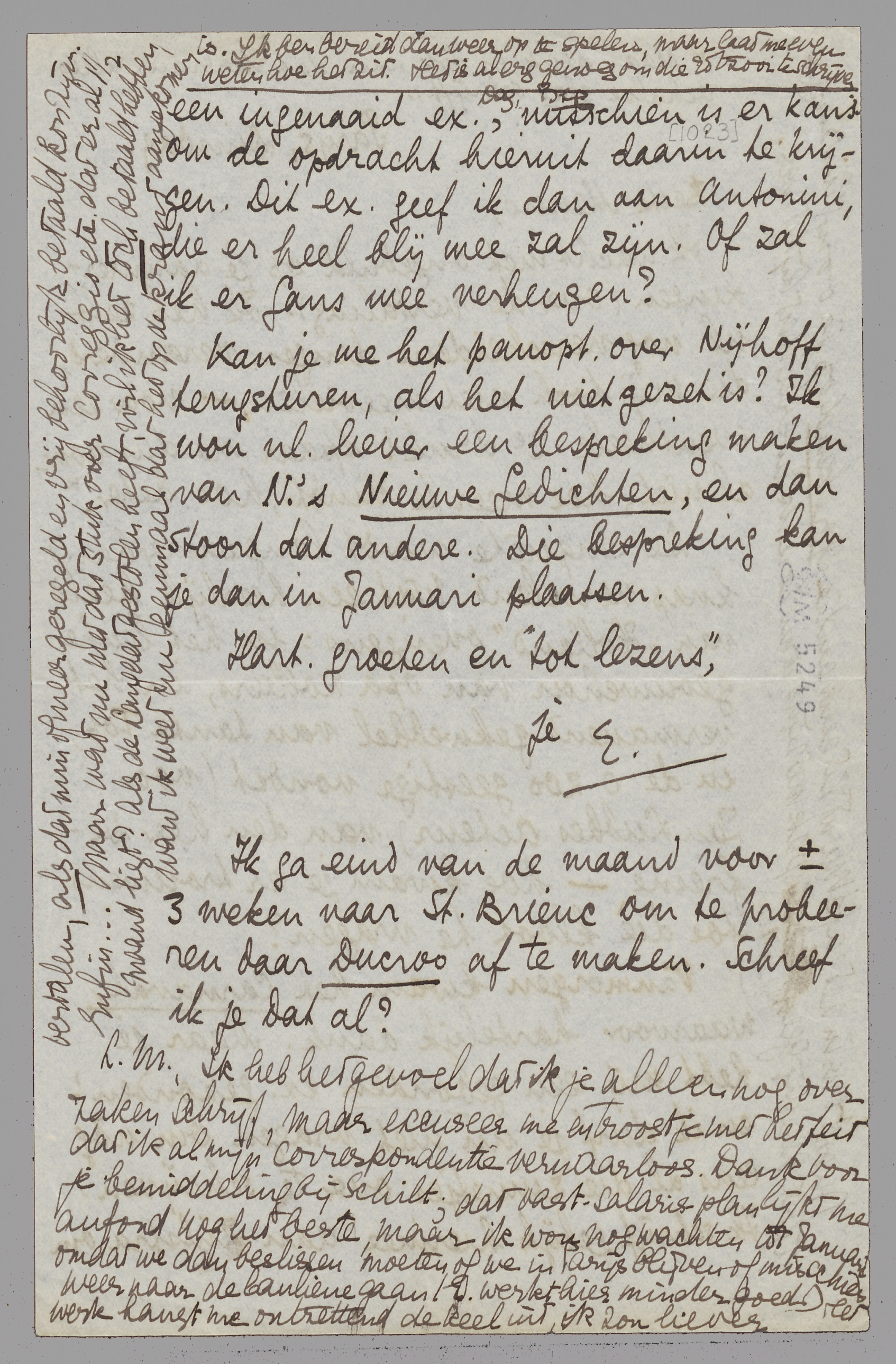 Kan je me het panopt. over Nijhoff terugsturen, als het niet gezet is? Ik wou nl. liever een bespreking maken van N.'s Nieuwe Gedichten, en dan stoort dat andere. Die bespreking kan je dan in Januari plaatsen.