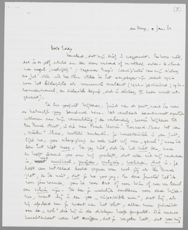 Vervelend, dat mijn brief is weggeraakt. Ik hoop niet, dat ik er zelf schuld aan ben door verkeerd of onvolledig adres. De inhoud was nogal ‘veelzijdig’; tegenover Bep's identificatie van mijn dialoog en ‘het’ stuk uit de Stem stelde ik het omgebogen zijn sedert 1926 naar het biologische als voornaamste resultaat (1926- pessimisme; 1935-nomadenmoraal, een biologisch begrip, dat in dialoog III nader wordt uitgewerkt).