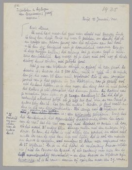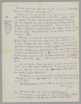 Ik werk hard, maar het gaat weer slecht met Ducroo. Sinds ik terug ben, heeft Parijs me weer te pakken, en daarbij heb ik nu zoetjes aan schoon genoeg van het schrijven aan dat boek. - Ik ben erg benieuwd naar je tooneelstuk, waarover Bep en ik diep zwijgen zullen; het schema dat je ervan geeft is alleszins aanlokkelijk. Bep vraagt of je haar niet ook nog je derde dialoog kunt zenden, met gelijke post.