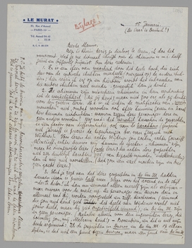 Ik sluit hierin een ander blaadje, dat ik in de Murat volgekrabbeld heb en geen lust heb om over te doen. Wat erin staat lijkt me nu te veel een verdediging, maar ik leg uit hoe ik het verband zie, - de mogelijkheid dat de uitwerking mislukt is blijft natuurlijk bestaan. Wat jij ‘schimmen’ noemt heb ik nl. behandeld als even vanzelfsprekende werkelijkheid als het deel herinneringen; ik geloof niet dat er aan ‘tooneel’ gedaan is, en bovendien, het ‘tooneel’ is voor mij niet de enscèneering en het opvoeren van personages, maar het bedrijf van den acteur.