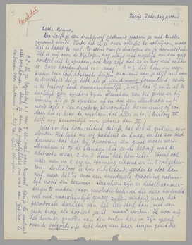 P.S. - Ik ga Donderdag a.s. voor een week naar Brussel. Kan je de week-end niet overkomen? Denk je aan de mogelijkheid om wat aan Het Vad. te verdienen voor Antonini? - Bep zal later schrijven.
