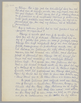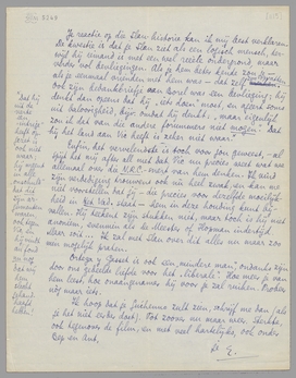 Ik zie hem overmorgen nog eens en zal hem je stuk dan voorvertalen, dat hij zeker heel sympathiek zal vinden. Hij spreekt langzaam, wat voor jou wschl. wel prettig is. - Van langzaam gesproken: wij kregen gisteren bij Malraux een Hindoe-journalist op interview, waarbij Clara, Bep en ik als tolk fungeerden, veel te veel tolken voor de zeer onheldere uitwisseling, die bovendien nog gecompliceerd werd door een bezoek van een duitsch kunstkritikus, Carl Einstein, zoodat alles zeer komisch werd. Toch heeft de Hindoe er, geloof ik, wel profijt van gehad!