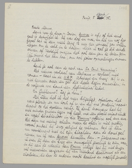 Dank voor de bespr. v. Coster. Ducroo is af; of het eind goed is betwijfel ik. Ik was dof en moe, en heb nu nog het gevoel dat ik een week lang 12 uur per etmaal zou willen slapen om de schâ in te halen. Maar ik zal je dit einde sturen, of Vestdijk vragen het ook aan jou te laten zien (jij stuurt het dan door), om ook jouw opmerkingen erover te hebben.
