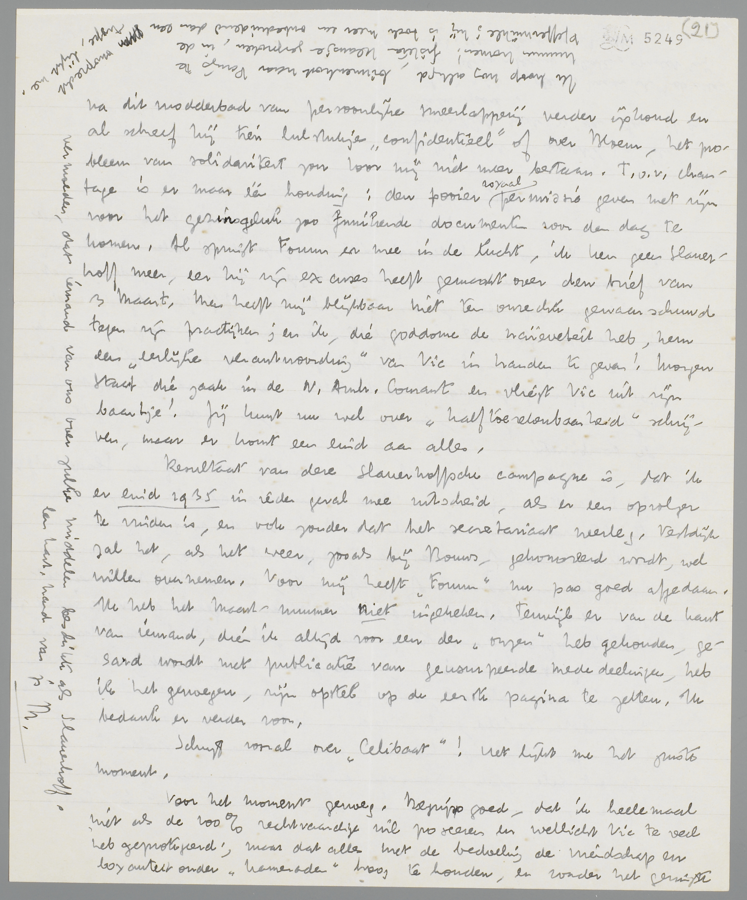 Schrijf vooral over Celibaat! Het lijkt me het juiste moment. Voor het moment genoeg. Begrijp goed, dat ik heelemaal niet als de 100% rechtvaardige wil poseeren en wellicht Vic te veel heb geprotegeerd; maar dat alles met de bedoeling de vriendschap en loyauteit onder ‘kameraden’ hoog te houden, en zonder het geringste vermoeden, dat iemand van ons over zulke middelen beschikte als Slauerhoff.