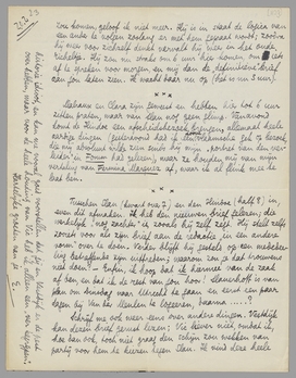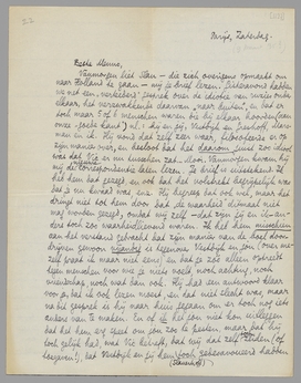 Tusschen Slau (kwart over 7) en den Hindoe (half 8) in, even dit afmaken. Ik heb den nieuwen brief gelezen; die werkelijk ‘nog zachter’ is, zooals hij zelf zegt. Hij stelt zelfs zooiets voor als zijn brief aan de redactie ‘in een andere vorm’ over te doen. Verder blijft hij gesteld op een mededeeling betreffende zijn uittreden; waarom zou je dat trouwens niet doen? - Enfin, ik hoop dat ik hiermee van de zaak af ben, en dat ik de rest van jou hoor! Slauerhoff is van plan om Dinsdag naar Utrecht te gaan en eerst een paar dagen bij Van der Meulen te logeeren, daarna...?