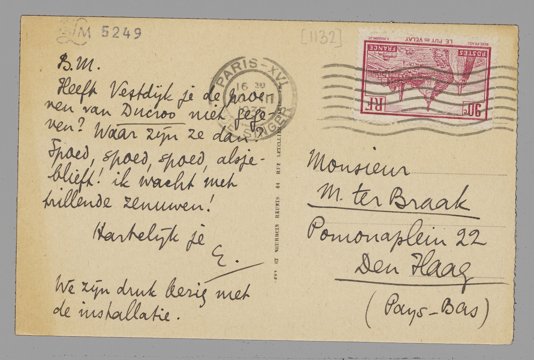 Heeft Vestdijk je de proeven van Ducroo niet gegeven? Waar zijn ze dan? Spoed, spoed, spoed, alsjeblieft! Ik wacht met trillende zenuwen! Hartelijk je