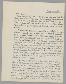 Als ik in Mei niet in Holland kom, kom jij dan hier. Ik heb het gevoel dat ik hoopen met je te bespreken heb, en het per brief niet meer doen kan.