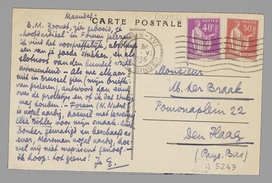Zoonet, zéér geboeid, je ‘hoofdartikel’ in Forum gelezen. Ik vind het voortreffelijk, absoluut een van je goede stukken, en als slotnoot van den bundel wschl. uitmuntend. - Als we elkaar niet in Brussel zien (mijn briefkaart van gisteren), antwoord dan even over de prolletjes en of ik dat stukje mag houden. - Forum (N. Nederl.) is nogal aardig, hoewel met te weinig Else Böhler voor mijn smaak. Anth. Donker gematigd en beschaafd as ever, Marsman nogal aardig, hoewel mij niet meprisant genoeg. - Ik hoop: tot ziens!