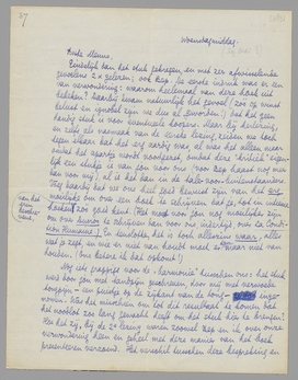 Ik zou het erg op prijs stellen als je me àl je Zondagstukken zond; ik wil dáárvoor graag het porto betalen. Ik bedenk nu dat je nog over De dood betrapt gaat schrijven, over Debrot, enz. enz. Je stuk over Het leven op aarde was werkelijk precies wat erover gezegd moest worden, dat over Donker was eig. ook voortreffelijk, bijna als ‘objectieve’ kritiek; maar ook als je besprekingen eens minder goed uitvallen, blijven ze toch de eenige consequente en betrouwbare uit de heele Nederl. pers, zoodat ik ze al zou willen lezen als ik je heelemaal niet kende!