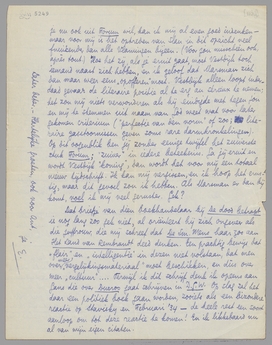 Dank voor Otten's Angsten en voor je aanvullende woorden over Ducroo. Ik geloof dat alles wat je in deze brief zegt, waar is, ook de tegenstelling Heverlé-Hille. Maar Bella op de Divan, dat als hoofdstuk voor mijzelf twijfelachtig blijft, bevat bladzijden die ik liever geschreven zou hebben dan 9/10 van ‘Indië’. Misschien is je antipathie (of hoe je 't noemen wilt) tegen de discussie, gewoon een gevolg van je wonen in Holland, en van het feit dat je geen vrienden hebt die over deze dingen praten, als de Malraux' hier in Parijs. De holl. gesprekken gaan, ook psychologisch en intellectueel, meestal niet verder dan: ‘Hoe vind je dit, en wat denk je over dat?’ - terwijl zooiets hier aanleiding is, meestal, tot wat anders. In bepaalde kringen altijd!