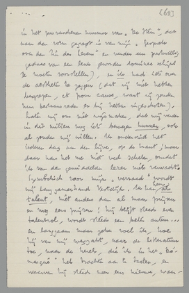 Het oordeel over Ducroo heb ik je voorspeld. Ik zal nu, na als ‘manager’ van je belangen te hebben gefaald, door over Ducroo te terughoudend te hebben geschreven, nog even wat ‘gas geven’ in de krant naar aanleiding van een herdruk van De Stille Kracht, (dat ik overigens met veel pleizier herlas; wat een afstand van de Székely's! Wat een talent juist op dit randgebied van de psychologie, het ‘mysterie’ en de society!). Al hindert het me, dat ik met bulderenden stem nog eens moet zeggen, wat ieder behoorlijk mensch uit mijn stuk Roman voor Jane haalt: dat ik het boek te goed vind om het met de openbare lof te vulgariseeren, waarmee ik een heel aardig boek als dat van meneer Preedy wel smakelijk kan opdisschen. Blijkbaar is het zwaarste geschut hier nog niet zwaar genoeg, om de ossen lezende, of liever koopende, te maken. Helpen zal je overigens zelfs de Stille Kracht niet; dit boek van je ontketent in den Nederlander alles wat hij aan objectiviteit, ‘romankunde’ en andere uitstekende eigenschappen sedert '80 heeft ingestudeerd in plaats van de deugd en de rijmwoorden van Prudens van Duyse.