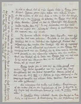 Ik ben te beroerd om lang te schrijven en bovendien, Donderdagavond spreken wij elkaar. Ik ga straks (of morgen) je kamer ‘vastzetten’ in je oude hotel, dat men vanuit ons raam bijna kan zien. Rijd met een taxi direct hierheen. [Ik kom je niet halen, want Jan is er dan net (sinds een uur?) en het is een heele reis naar het noorden! Kom hier.]