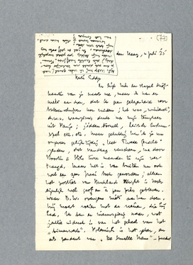 Er ligt hier een stapel briefkaarten van je naast me, maar ik kan er niets aan doen, dat ik geen gelegenheid voor brievenschrijven kon vinden; het was ‘wintersch’, d.w.z. waanzinnig druk na mijn terugkeer uit Parijs; jidden tooneel, Leidsch lustrumspel etc. etc. Maar gelukkig kan ik je nu ongeveer gelijktijdig Het Tweede Gezicht zenden, dat vandaag verscheen, na door Boosten & Stols twee maanden te zijn vertraagd. Maar het is van buiten nu ook wel een zeer fraai boek geworden; alleen het portret van Buckland Wright is toch eigenlijk wel grof en à peu près gebleven. Waar B.W. overigens niets aan kan doen, hij moest roeien met de riemen, die hij had. Ik ben er nieuwsgierig naar, wat jullie indruk is van het geheel van het ‘binnenwerk’. Polemisch is het zeker, en als pendant van De Smalle Mens - product toch wel hoofdzakelijk van mijn Forumtijd - een goed vergelijkingsobject. Ik denk, dat wij elkaar sterk genaderd zijn; leg b.v. Afscheid van Domineesland naast de Cahiers! Daar is de afstand oneindig veel grooter.
