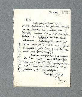 Met gelijke post gaan eenige drukwerken: de gevraagde kranten en een boekske van Huizinga, dat ik toevallig vandaag las - met duidelijke teekenen van walging. En met dezen volmaakten centenbezitter zouden wij moeten samengaan? Het is immers glad onmogelijk! (Na lezing graag bij gelegenheid met Gorter terug).
