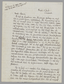 Ik wil voor Vigilance wel doen wat ik kan, omdat ik nu eenmaal hier ben en het als een lafheid voel (dat is misschien mijn dwaasheid) om mij aan alles te onttrekken. Maar als 14 Juli voorbij is en er is niets gebeurd - het botsen wordt dan uitgesteld tot October! - dan heb ik eig. alleen nog maar lust om mij buiten dit heele soldaatje spelen te houden, als buiten iets minderwaardigs.